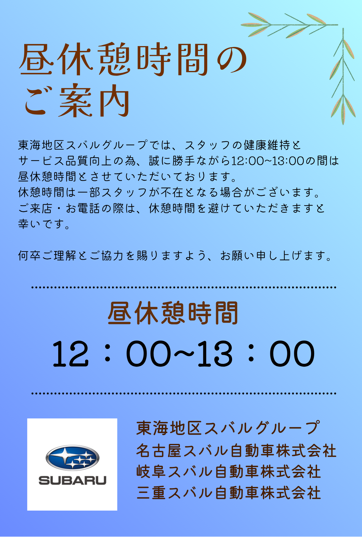 昼休憩時間のご案内について